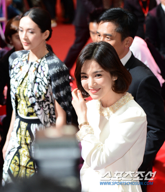 2013 중국영화제 개막식이 16일 서울 여의도 CGV에서 열렸다. 개막식에 앞서서 레드카펫 행사가 펼쳐진 가운데 송혜교가 양조위의 손을 잡고 레드카펫 위를 걷고 있다.