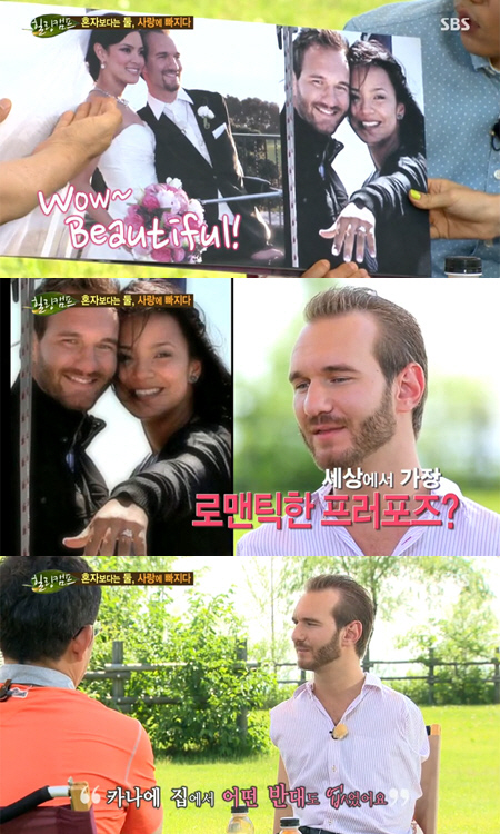 이날 방송에서는 닉 부이치치의 아내 카나에의 사진이 공개됐다. 배우 뺨치는 미모를 자랑하는 카나에를 본 MC들은 감탄을 금치 못했고, 닉 부이치치는 아내의 사진을 보며 흐뭇한 미소를 지었다.