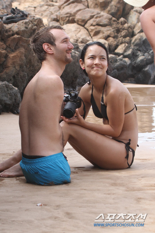 '행복전도사' 닉 부이치치가 미모의 아내 카나에 미야하라와 해변에서 즐거운 시간을 보내고 있는 모습이 포착됐다.