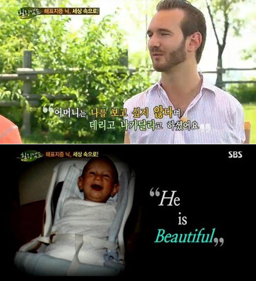 닉 부이치치는 "그런데 내가 태어났을 때 모든 간호사들이 울었고 아버지는 나지막이 신음을 내셨다. 어머니는 나를 보고 싶지 않다며 데리고 나가달라고 하셨다"고 전해 안타까움을 자아냈다.