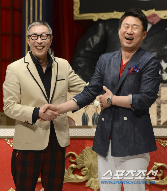 서세원 복귀 소감. 18일 오후 서울 강서구 가양동에서 종합편성채널 채널A 토크쇼 '서세원 남희석의 여러 가지 연구소' 기자간담회가 열렸다. 서세원과 남희석이 포토타임에서 포즈를 취하고 있다. '서세원 남희석의 여러 가지 연구소'는 두 MC가 다양한 인생의 문제를 놓고 색다른 질문으로 명쾌한 해답을 제시하는 생존 토크쇼로 7월 초 방송된다. 김보라 기자 boradori@sportschosun.com /2013. 06. 18/