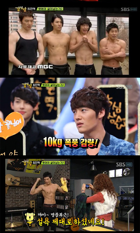 최진혁은 지난해 1월 방송된 SBS '강심장'에 출연해 명품 복근을 갖게 된 계기를 털어놨다.