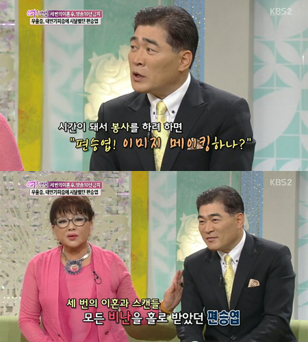 편승엽은 20일 방송된 KBS 2TV '여유만만'에 출연해 세 번의 이혼 후 방송을 10년간 쉬게 된 안타까운 사연을 털어놨다.