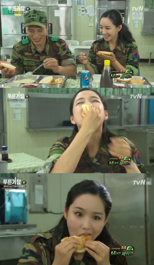 점심시간이 되자 군대 햄버거인 일명 군대리아를 먹는 장면에서 "네 개 째 먹고 있다"는 한기범의 말에 이유리는 "저는 다섯 개도 먹을 수 있는데요"라며 승부욕을 발동했다. 이에 김재우는 "유리 씨는 입이 작아서 하나만 먹어도 배부를 것 같다"며 만류했다.