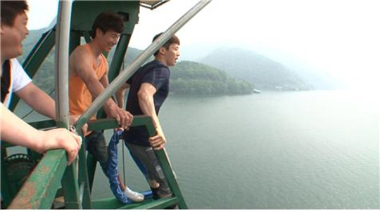 설레이는 마음으로 가장 먼저 번지에 시도한 허경환은 한 번에 뛸 거라는 예상과 다르게 수차례 시도에도 뛰어내리지 못하고 난간을 두 손으로 꼭 붙잡아 웃음을 자아냈다.