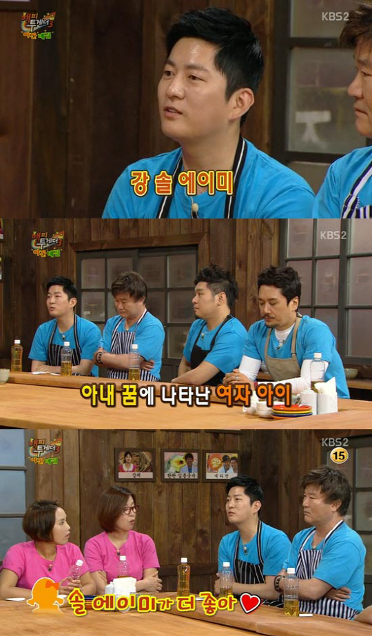 강레오는 "딸의 이름을 짓기 전, 아내 꿈에 여자 아이가 나타나 '이름이 뭐야'라고 물었더니 '에이미'라고 했다"며 "아내가 다른 이름 없냐고 물었더니 '솔'이라고 했다. 그 여자아이가 '솔에이미'가 더 좋다고 했다. 그래서 지어진 이름이다"며 딸아이의 이름에 관한 비하인드 스토리를 전했다.
