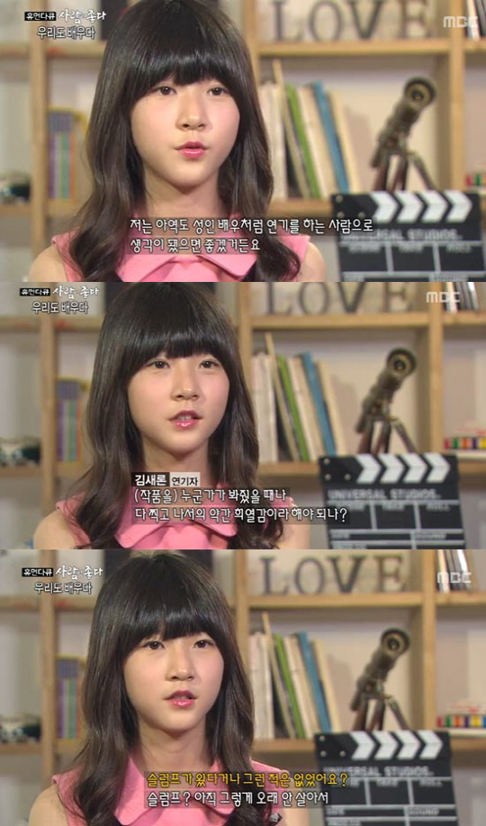 22일 방송된 MBC '휴먼다큐 사람이 좋다-우리도 배우다'편에는 아역배우 김새론과 서신애, 김향기가 출연해 자신들의 이야기들을 털어놨다.