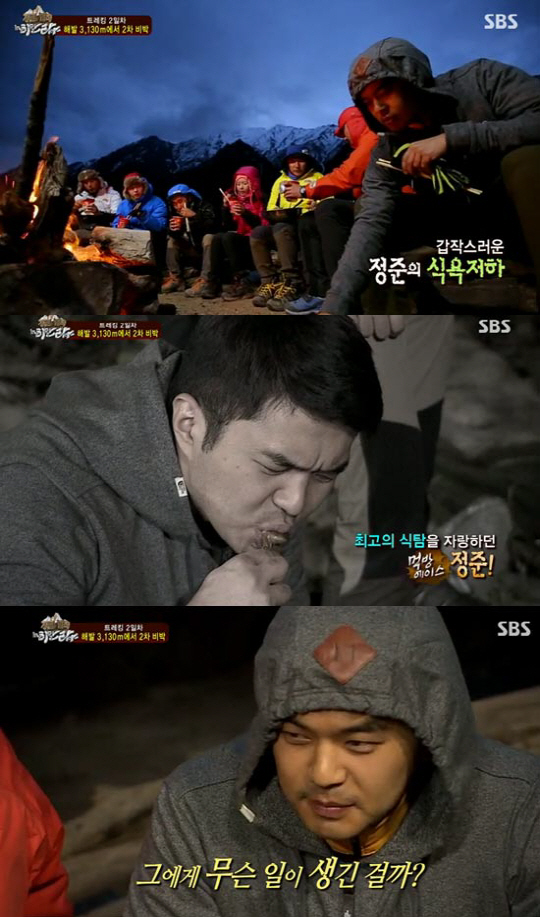 배우 정준이 고산병 증세로 식사를 거부해 눈길을 끌고 있다.