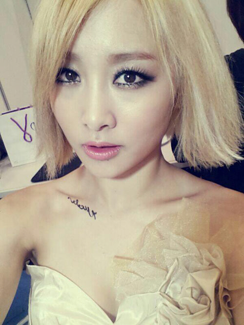 카라 멤버 니콜이 쇄골에 새긴 타투 인증샷을 공개했다.