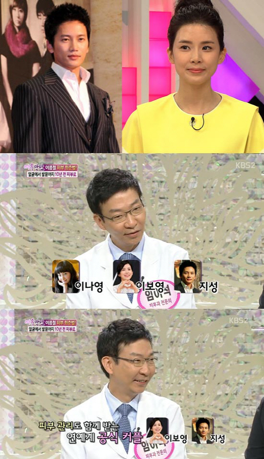 이에 MC조우종 아나운서는 "이보영씨와 지성씨는 같이 옵니까?"라며 콕 집어 질문을 던졌다. 그러자 임 원장은 "두 사람이 항상 같이 온다"며 톱스타 커플의 피부과 데이트에 대해 전했다.