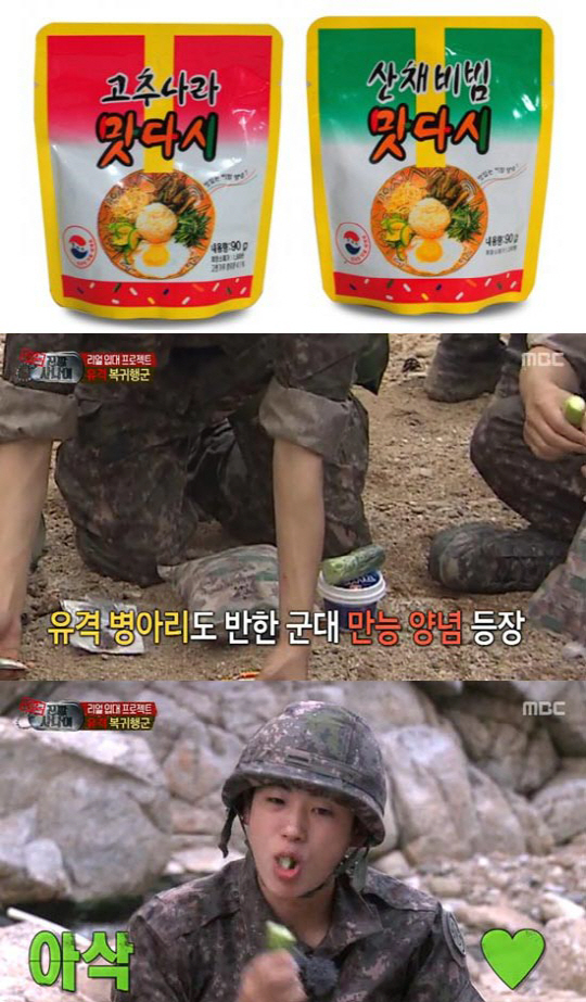 지난 23일 방송된 MBC'일밤-진짜 사나이'에서는 '맛다시'를 처음 맛본 박형식이 맛에 감탄해 오이에까지 뿌려먹는 기발한 아이디어를 선보였다.