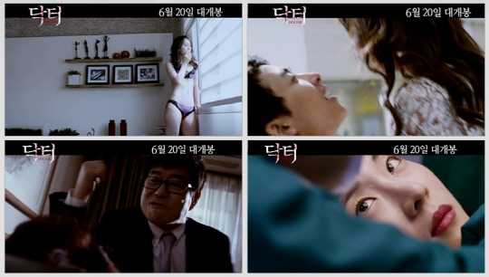 나지막한 피아노 선율과 함께 수술대 위에 누운 여성의 몸에 그림을 그리는 장면으로 시작되는 영상은 '모든 것이 아름다웠다. 그 일이 일어나기 전까지…'라는 카피로 긴장감을 조성한다. 이어 속옷만 입은 채 표정없는 얼굴로 창가에 서서 담배를 피우는 인범(김창완)의 젊은 아내 순정(배소은)의 모습이 보여지고, 내연남 영관과의 위험하고 아찔한 장면까지 등장한다. 또 믿었던 아내의 외도를 알게된 후 분노하는 인범의 모습과 영관을 망치로 내려치거나 수술대 위 환자를 순정으로 착각하고 목을 조르는 등의 무자비한 모습과 '아름답고 정교한 복수'란 반어적 카피가 어우러져 잔인함을 배가시킨다. '닥터'는 부인의 외도를 목격하게 된 성형외과 의사 최인범의 복수극을 다룬 작품으로 현재 상영 중이다.