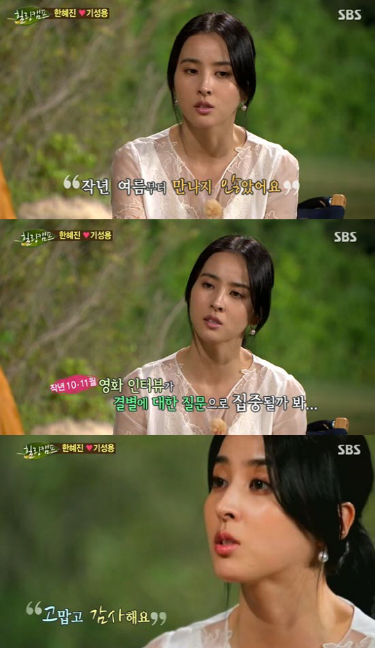 이에 한혜진은 "작년 여름부터 만나지 않았다"며 "그 전부터 많이 소원해 있었다"고 털어놨다. 이어 "당시 영화 촬영을 하고 있었고, 영화 홍보를 10월 11월에 했어야 했는데 결별에 대한 질문을 많이 하실까봐 그때까지 공식적인 보도는 피했다"고 털어놨다.