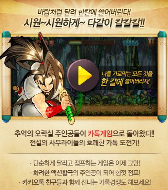 '다같이 칼칼칼 for Kakao'는 과거 인기 대전 격투게임 '사무라이 쇼다운'의 IP(지적 재산권)를 활용한 러닝게임. 출시 전 진행된 사전 이벤트를 통해 '사무라이 쇼다운'의 팬들로부터 뜨거운 호응과 높은 기대를 모은 바 있다.