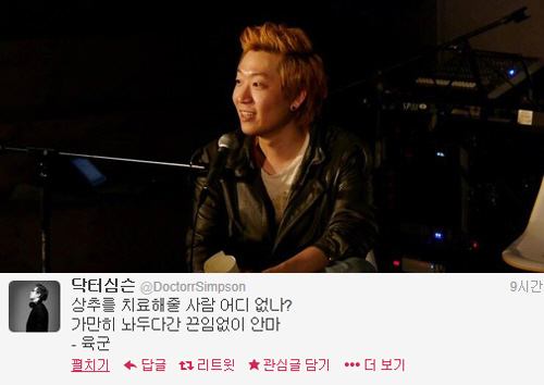 닥터심슨은 26일 자신의 트위터에 "사실 아웃사이더님 오늘 싱글 나오는거 많이 기다렸고 그러다보니 그냥 가사가 생각났다"며 "남의 나쁜일로 구설오르니까 그렇게 기분이 썩 좋지는 않네"라는 글을 올렸다.