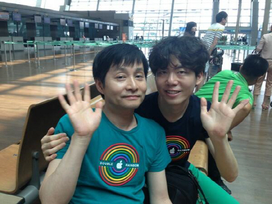 5월 동성 결혼을 발표한 김조광수 감독과 김승환 레인보우팩토리 대표의 커플룩 사진이 공개됐다.