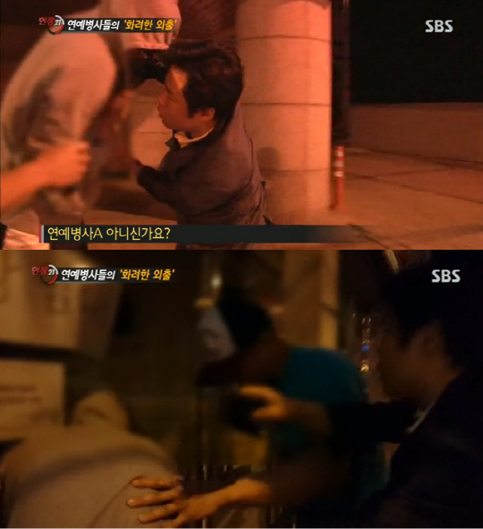 지난 25일 SBS '기자가 만나는 세상 현장21'은 일부 연예병사들이 강원도 춘천에서 지방공연을 마친 뒤 술자리를 가졌으며, 이중 유명 가수 출신 2명이 심야에 안마시술소를 찾는 모습을 방송해 충격을 줬다.