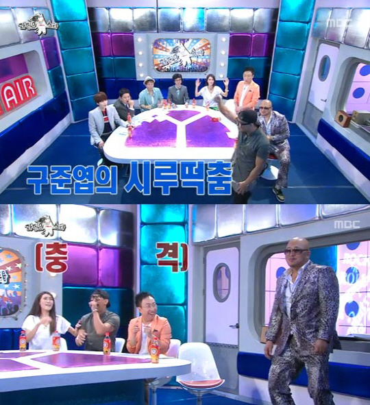 이에 구준엽은 "지금 20대 사이에서 유행하는 춤이다"고 덧붙여 말하며 직접 시범을 보였다. 구준엽은 "클럽에서 보면 춤이 조금 야하다"며 골반과 함께 고개를 계속 끄덕이는 일명 '시루떡 춤'을 선보여 눈길을 끌었다.