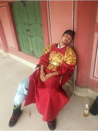 이에 임슬옹은 왕에 등극하는 모습을 촬영 중이었는듯 임금의 옷인 용포를 입고 있는 모습이다. 이어 임슬옹은 '천명' 바쁜 촬영 탓에 잠을 제대로 이루지 못한 듯 작은 의자에 앉아 벽에 기댄 채 폭풍 수면 중인 모습이 포착돼 웃음을 선사했다.