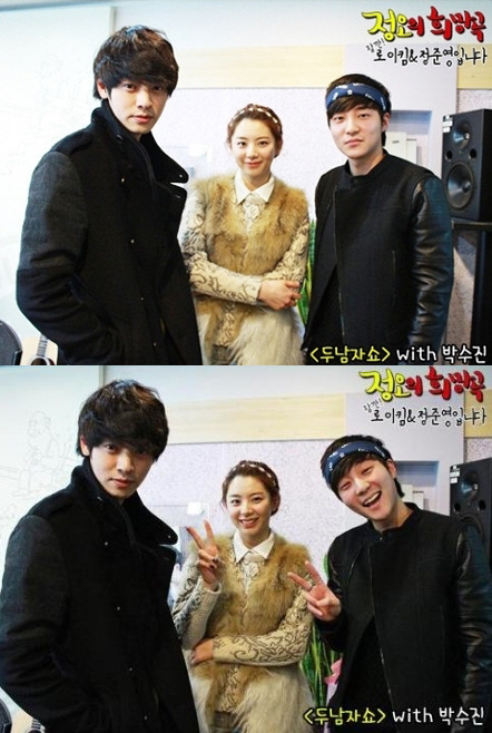 사진 속 박수진은 머리를 깔끔히 빗어 넘긴 채 뽀얗고 잡티 없는 여신 외모를 뽐냈다. 이어 검은색 재킷을 입고 머리에는 손수건을 두른 로이킴과 정준영이 카메라를 향해 은근한 미소를 날리고 있는 모습이다.