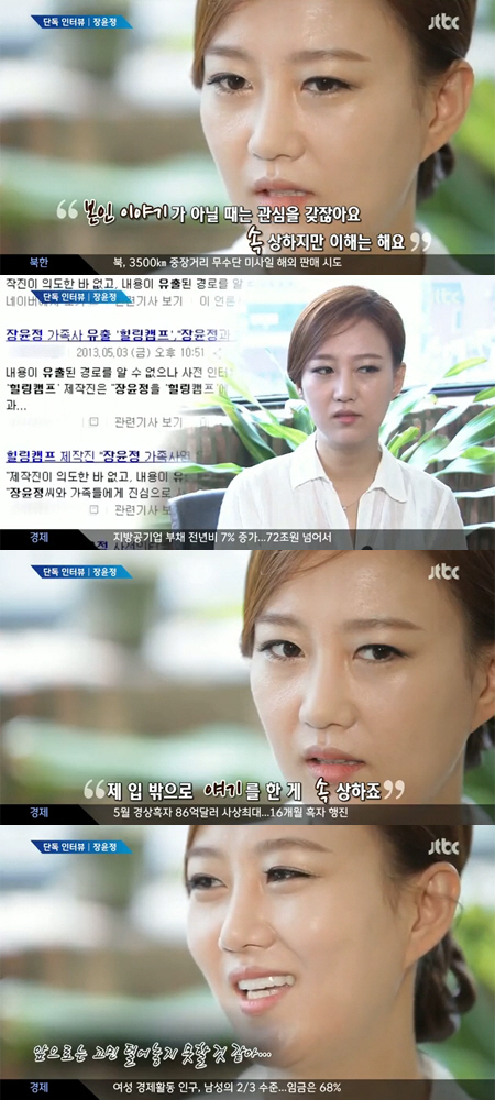 장윤정은 SBS '힐링캠프' 사전 인터뷰 유출에 대해서도 솔직한 입장을 밝혔다.