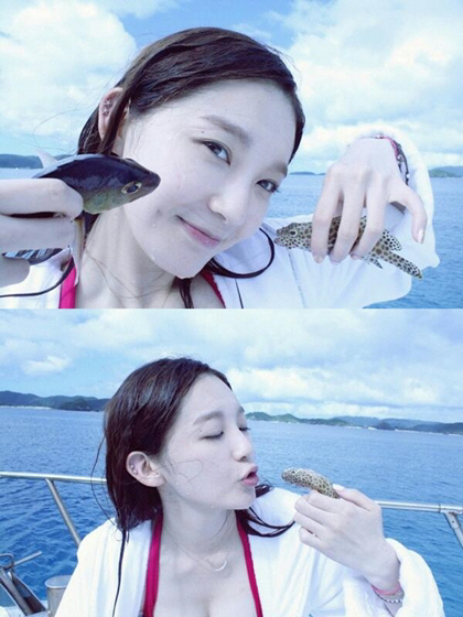 다비치 강민경이 물고기를 들고 찍은 '귀요미 셀카'를 공개했다.