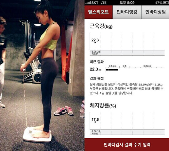 클라라는 몸매가 적나라하게 드러나는 레깅스 팬츠와 브라탑 운동복을 입은 채 긴장감이 역력한 얼굴로 인바디를 측정하는 자신의 모습과 체지방 분석 결과표를 함께 공개했다.