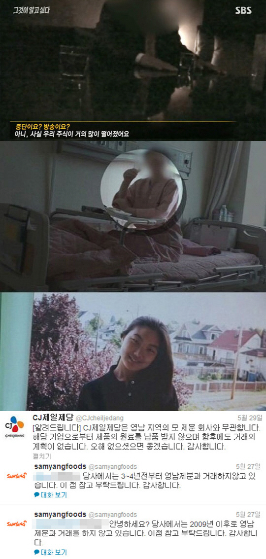 이에 삼양식품은 지난달 27일 '사모님의 이상한 외출 - 여대생 청부살해사건, 그 후'편 방송이후 공식 트위터를 통해 "삼양식품은 2009년 이후로 영남제분과 거래를 하지 않고 있다"는 내용을 트위터에 올렸다.