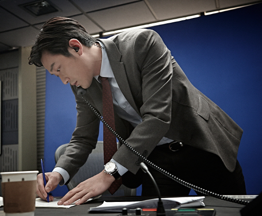1일 공개된 스틸컷에서 하정우는 깔끔한 회색 정장에 와이셔츠, 붉은 넥타이를 매고 깔끔하게 머리를 빗어 넘긴 스타일로 지적이면서도 신뢰감 안기는 앵커의 모습을 표현했다. 또 날카롭고 긴장된 표정을 통해 테러범과의 전화 통화 독점 생중계를 앞둔 냉철한 카리스마도 발산했다.