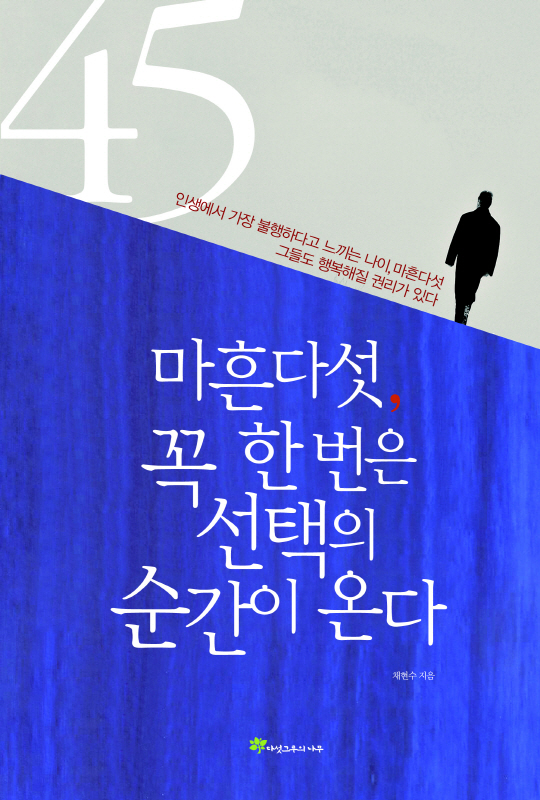 '마흔 다섯 꼭 한 번의 선택이 온다(다섯그루의 나무)'는 인생 기로에 선 40대 중반의 멘토를 자처하는 책이다. 저자 채현수는 KT에서 22년째 근무하는 직장인이다. 대학 시절 영자신문사 기자로 활동하면서 작가의 꿈을 키웠으나 밥벌이를 하느라 오랫동안 잊고 살았다. 그는 이 시대를 사는 마흔들, 예비 마흔들과 사고와 비전을 공유하기 위해 틈틈이 글을 썼다. 인생 3모작시대에 발맞춰 모든 마흔이 가슴 뛰는 꿈을 품고 즐겁고 행복한 삶을 살아가면서 풍요로운 노년을 준비할 수 있도록 인생 플랜을 안내하는 책이다.