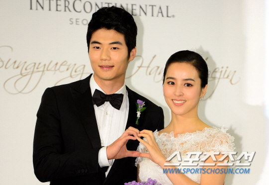 7월1일 서울 삼성동 인터콘티넨탈호텔에서 기성용과 한혜진이 결혼식을 올렸다. 이들의 결혼식은 서울드림교회 김여호수아 목사가 주례를 맡았으며, 가수 양파가 축가를 부를 예정이다. 결혼식 전 열린 기자회견에서 기성용과 한혜진이 밝은 표정으로 포즈를 취하고 있다. 기성용과 한혜진이 하트를 만들어 보이고 있다. 삼성동=송정헌 기자 songs@sportschosun.com