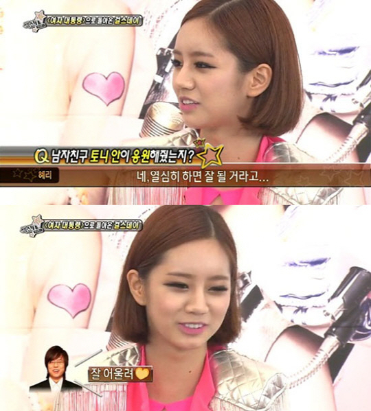걸스데이 멤버 혜리가 공개 연인인 가수 토니안을 언급해 화제다.