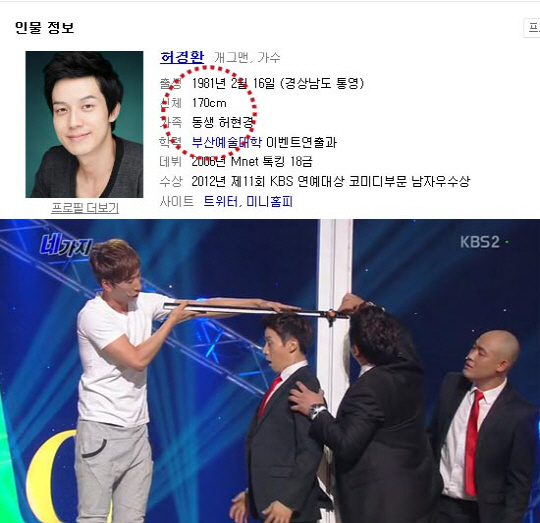 지난 30일 방송된 KBS 2TV '개그콘서트-네가지'에서는 허경환의 실제 키가 167.3cm인 것으로 드러났다.