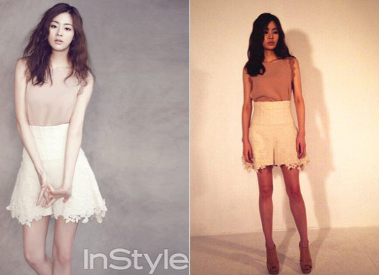특히 보통은 화보와 원본 사이에 차이가 있게 마련인데, 강소라는 조명을 살려 환하게 바꾼것 외에는 별로 달라진 바가 없는 완벽한 각선미와 몸매를 자랑해 눈길을 끈다.