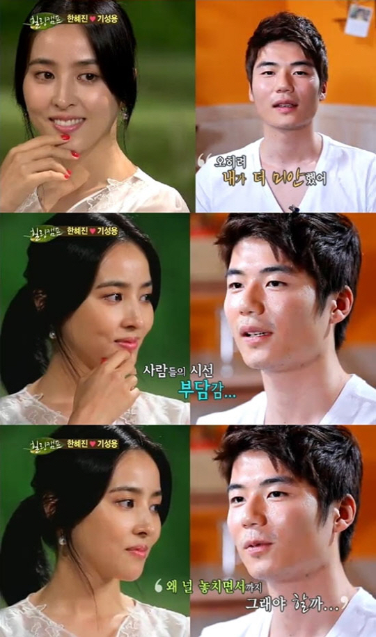 이어 한혜진은 그 당시 상황을 설명했다. "하루는 분위기가 이상해서 '부담스럽냐'고 직접적으로 기성용 선수에게 물었다"는 그녀는 "그때서야 정신이 번쩍 났다. 그리고는 오히려 내가 미안하다고 했다"고 이야기 했다.