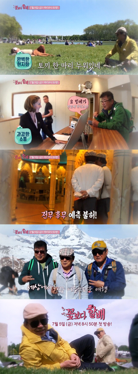 파리 에펠탑 앞에 나란히 선 H4의 모습을 시작으로 이어진 화면에는 '맏형' 이순재가 외국 젊은이들처럼 풀밭에 누워 여유를 만끽하는 모습이 담겨있다. 깜찍한 토끼 안대까지 착용한 채 누워있는 이순재를 물끄러미 바라보던 신구는 "토끼 한 마리가 누워있다"고 말해 웃음을 자아냈다.