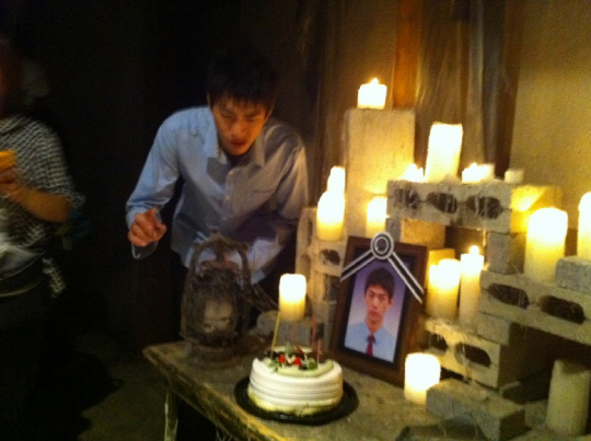 영화 '명왕성'(감독 신수원)의 주인공 성준이 극 중 사망하고 영정사진 촬영을 하는 날 진짜 성준 생일을 맞이해 자신의 영정 사진 앞에서 생일 파티를 하는 웃지못할 생일 제사상을 받았다. 공개한 사진 속에는 성준의 영전 사진과 생일 축하 케이크가 나란히 놓여있는 아이러니한 상황이 연출됐다. 성준은 이 장면을 사진으로 남기는 엉뚱함을 발휘해 현장을 웃음바다로 만들었다는 후문이다.