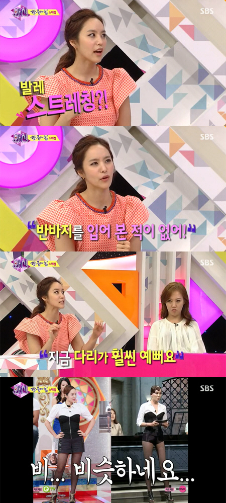 박지윤은 "예전에는 다리를 드러내는 반바지를 한여름에도 한 번도 입어본 적이 없다. 근데 살을 빼는 과정에서 발레 스트레칭을 열심히 하다 보니까 체중은 같지만 예전보다는 지금 다리가 훨씬 예쁘다"며 자신감을 드러냈다.