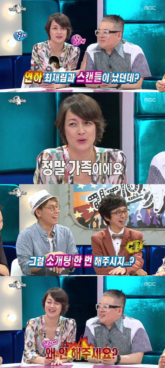 억울해 하는 김형석은 "너무 친하고 오래 알고 지내서"라고 항변했고, "그럼 소개팅 좀 한번 시켜주지 그랬냐"는 반문에 말을 잃었다. 옆에 있던 박칼린도 "그러게 왜 안 해주세요?"라고 너스레를 떨어 주위를 폭소케 했다.