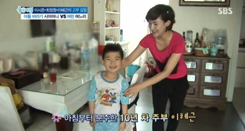 5일 방송된 SBS '좋은 아침'에서 이혜근은 고부 갈등을 풀기 위해 시어머니와 캠핑을 떠나게 됐다. 그는 캠핑을 앞두고 아침부터 일찍 아들을 유치원에 보낼 준비를 했는데, 아들은 엄마를 쏙 빼닮아 깜찍한 외모를 뽐내 눈길을 끌었다. 아직 잠이 덜 깬듯 눈을 비비며 유치원에 가면서 엄마와 떨어지기 싫어하는 천진난만한 모습까지 갖춰 시청자들의 호응을 받았다.