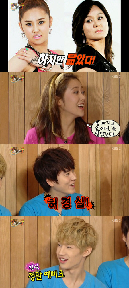 이에 MC 유재석은 "약간 닮긴 닮았다"고 말했고, 허가윤은 "닮았냐. 살 빠지고 (별명이) 많이 없어진 줄 알았다"고 응수해 웃음을 자아냈다.