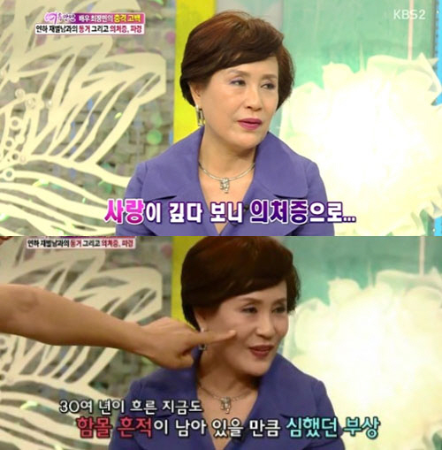 최정민은 "경제적 도움뿐 아니라 배우 활동도 적극 지원해줘서 다 좋았다. 내가 가려운 부분을 다 긁어주는 사람이었다"며 "모든 걸 다 해주려고 했던 열정적인 남자라서 다 좋았는데 사랑의 도가 지나치더라"며 동거남이 의처증이 있었다고 털어놨다.