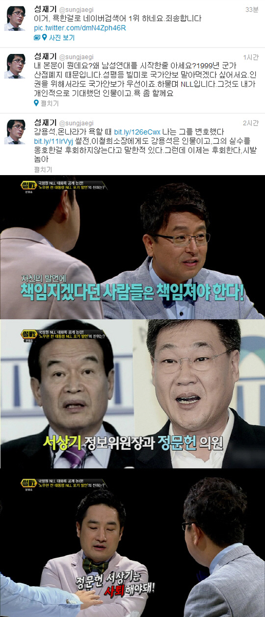 이어 성재기는 "내 본분이 뭔데요? 왜 남성연대를 시작한줄 아세요? 1999년 군가산점폐지 때문입니다. 성평등 빌미로 국가안보 말아먹겠다 싶어서요. 인권을 위해서라도 국가안보가 우선이죠. 하물며 NLL입니다. 그것도 내가 개인적으로 기대했던 인물이고. 욕 좀 할게요"라며 불쾌한 반응을 내비쳤다.