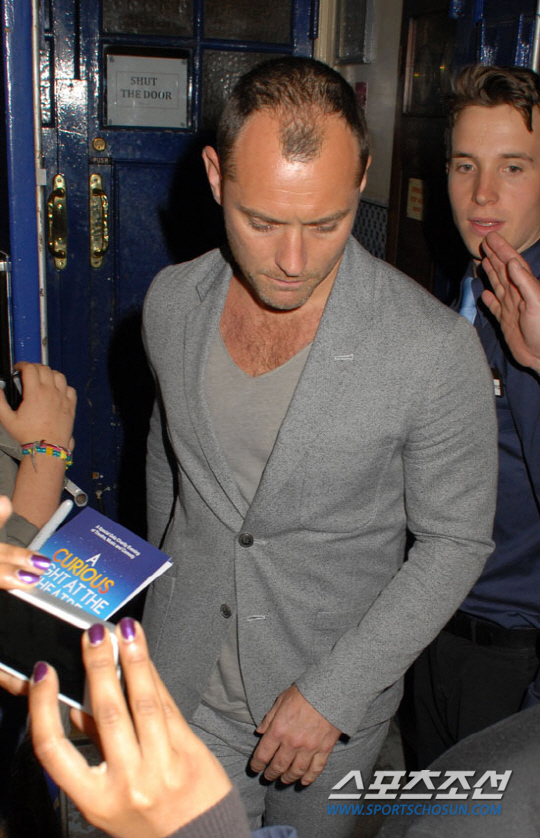 이날 주드 로는 회색 티셔츠에 동일한 색상의 수트를 매치한 심플하면서도 세련된 패션을 선보였다. 그런데 파파라치의 카메라에 포착된 그의 머리 상태는 실로 놀라움을 안겼다.