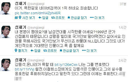 또 성 대표는 이 트위터 글이 주목을 받아 포털사이트 실시간 검색어 순위 1위에 자신의 이름이 오르자 "이거, 욕한 걸로 검색어 1위하네요. 죄송합니다"라는 글을 올리기도 했다.
