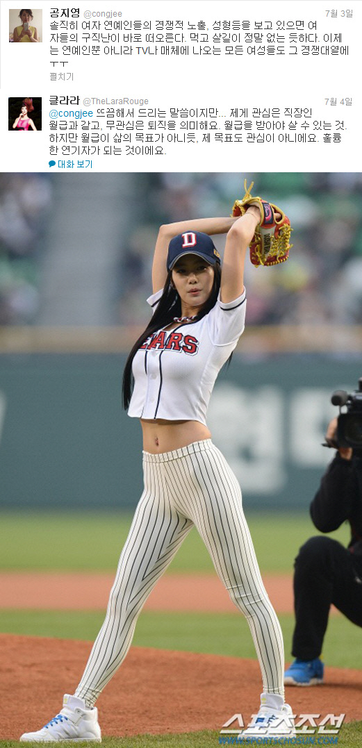 한편 클라라는 섹시한 시구의상 덕에 유명세를 탄 후 "레깅스를 통해서 클라라를 알릴 수 있고 지금 더 많은 관심을 받아 감사하게 생각한다"며 "아무래도 제가 8년 동안 관심을 못 받았는데 이 관심을 잃고 싶지 않다"고 솔직한 심경을 드러내기도 했다. <스포츠조선닷컴>