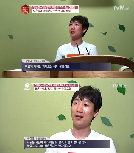 장경영은 9일 방송된 tvN 'eNEWS'의 화요일 코너인 '기자 대 기자: 특종의 재구성'에 출연해 "누나의 결혼식에 초대 받지 못한 점에 서운하다"고 털어놨다.