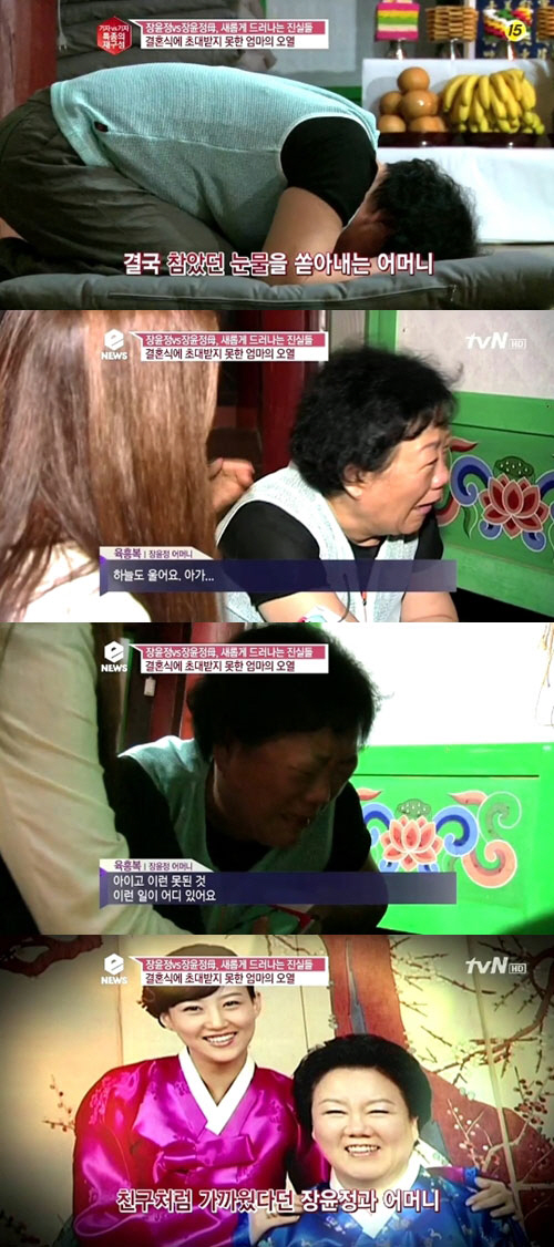 9일 방송된 tvN 'eNEWS-기자 vs 기자, 특종의 재구성'에서는 6월 28일 장윤정의 결혼식 전후, 장윤정 어머니와 남동생의 모습이 공개됐다.