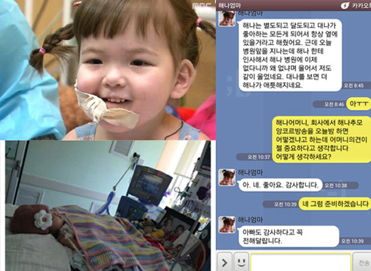지난 5월 '휴먼사랑 다큐'를 통해 처음으로 소개된 해나는 선천성 기도 무형성증이라는 희귀병을 안고 태어났지만, 배에 난 구멍을 통해 위장에 음식물을 투여 받는 고통을 감수하면서도 웃음을 잃지 않아 시청자들에게 감동을 안겼다.