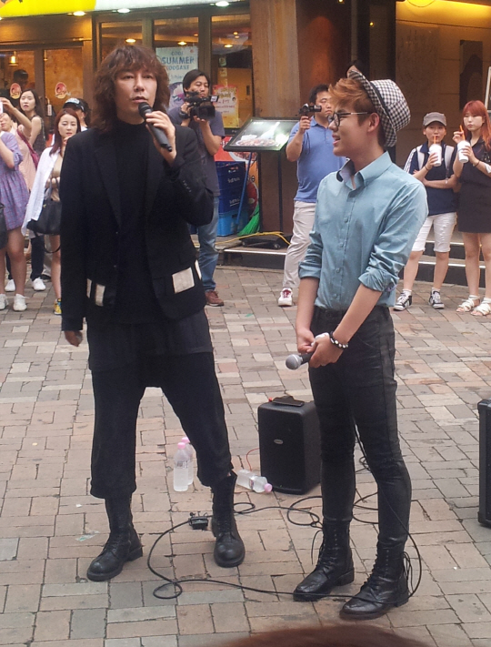 지난 10일 오후 홍대 예술의 거리 근방에서 열린 신인가수 케이헌터의 게릴라 콘서트에 가수 김장훈이 깜짝 등장해 케이헌터는 물론 현장에 있던 200여명의 관객을 깜짝 놀라게 했다.